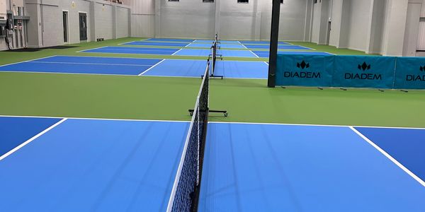 Keep the court clear — only one ball per court, and please leave bags, bottles, and towels off the playing area.